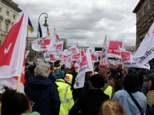 Vor dem großen Warnstreik demonstrieren Gewerkschaften und Initiativen in Berlin Vom Brandenburger Tor bis zur Leipziger Straße: An die tausend ...